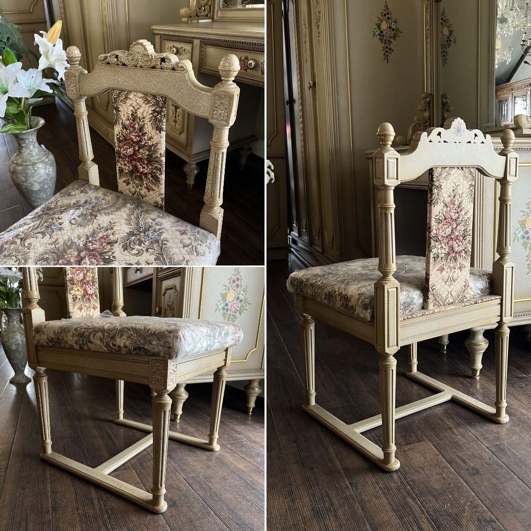 チェア座面はゴブラン調の優雅な花柄ファブリックとなっております。