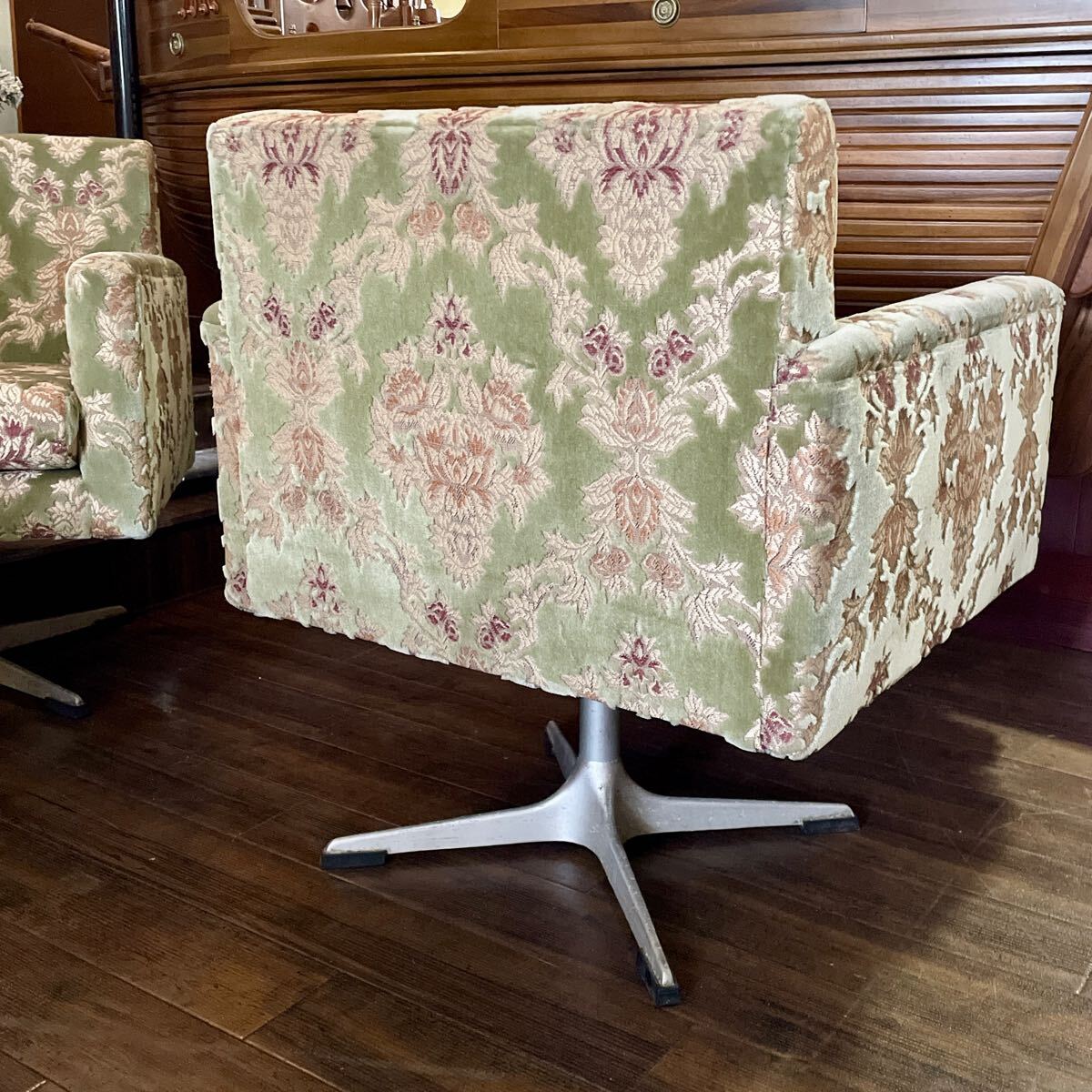 豪華な生地でレトロな雰囲気たっぷり、アンティークな空間にぴったりなチェアです。