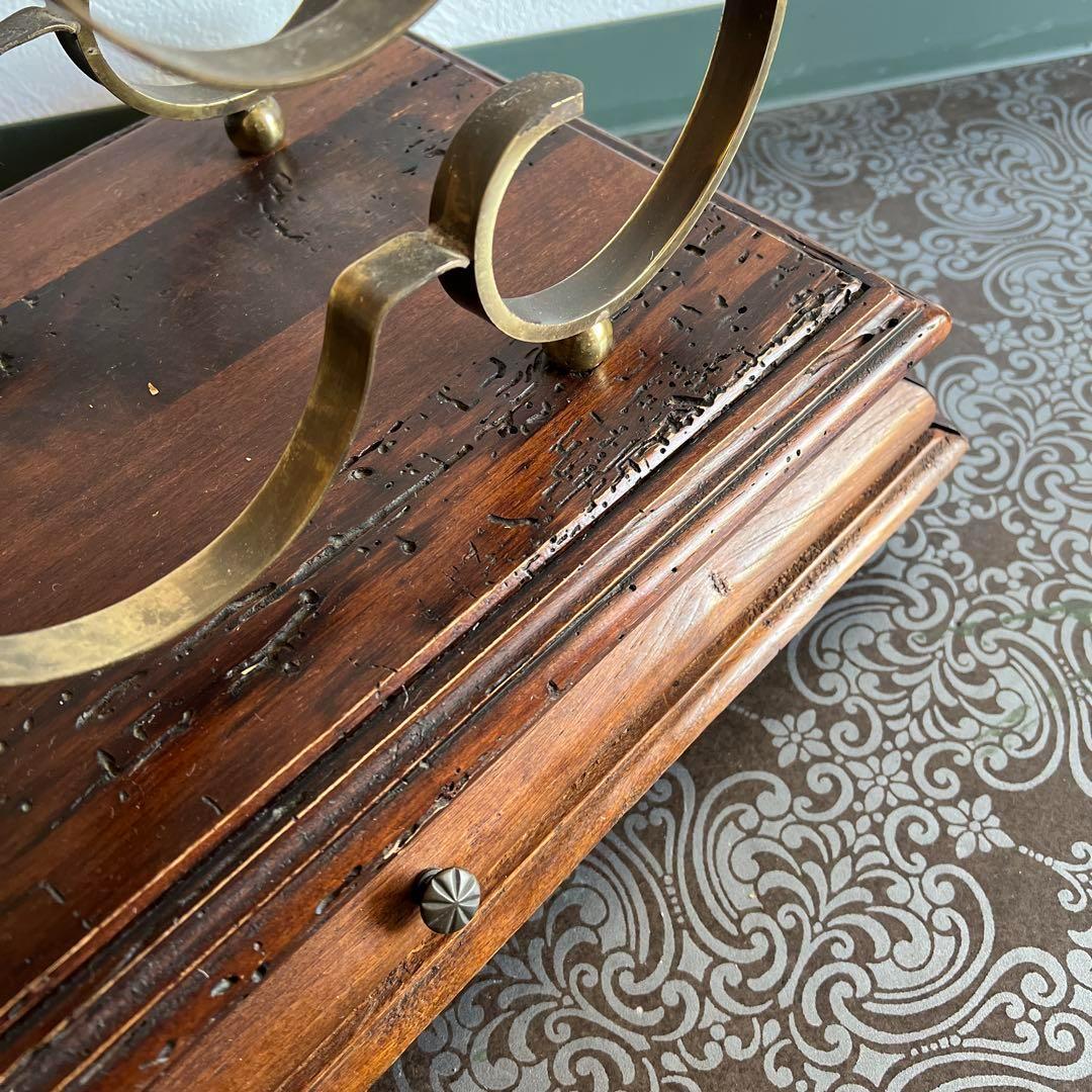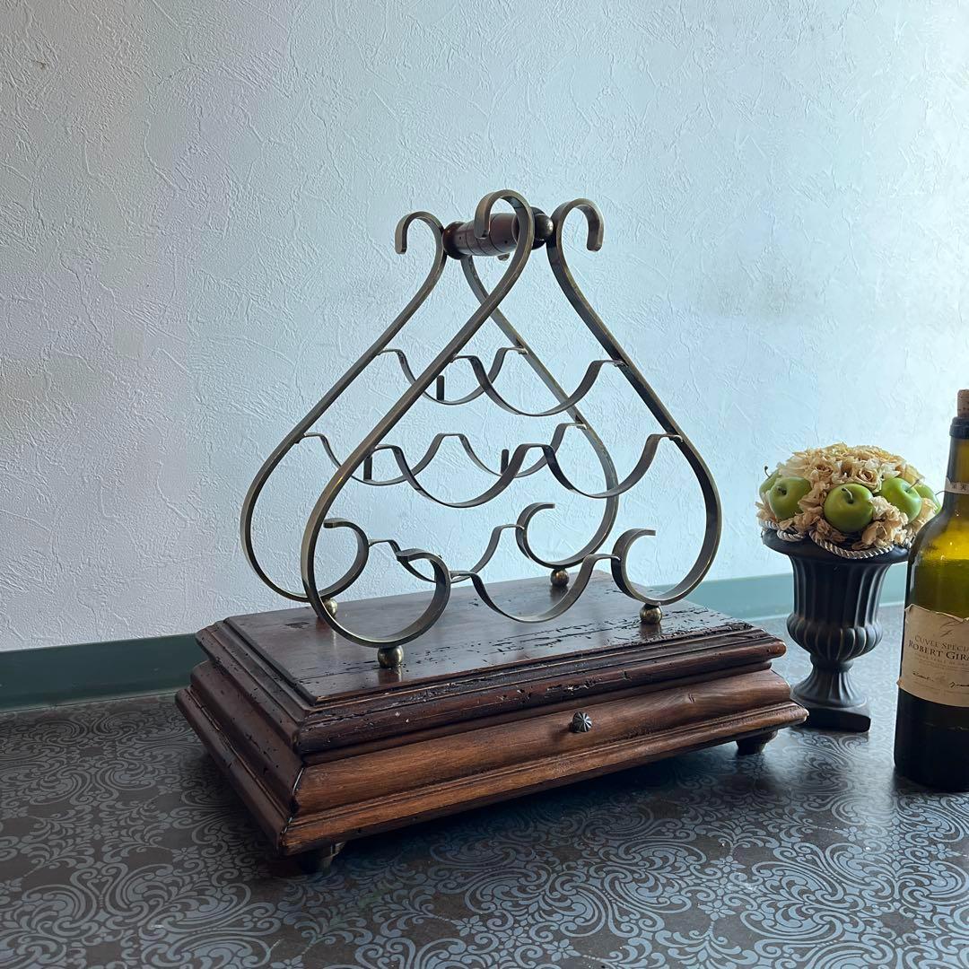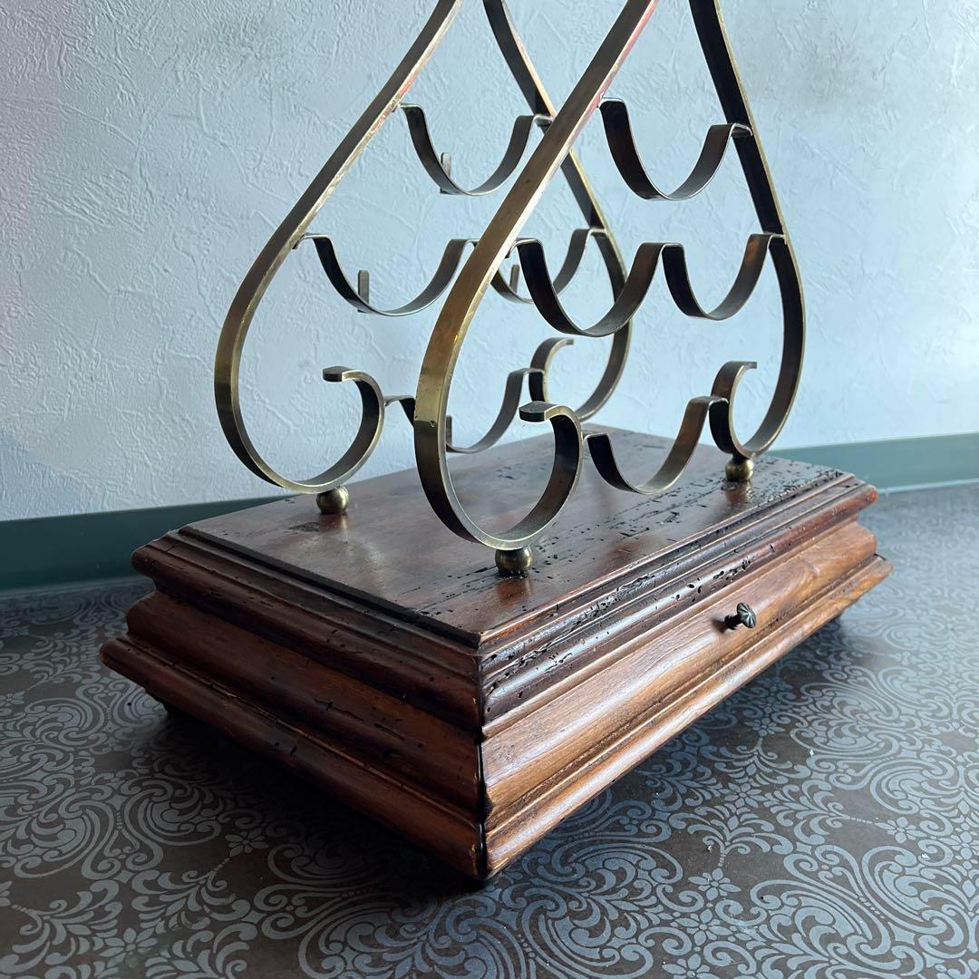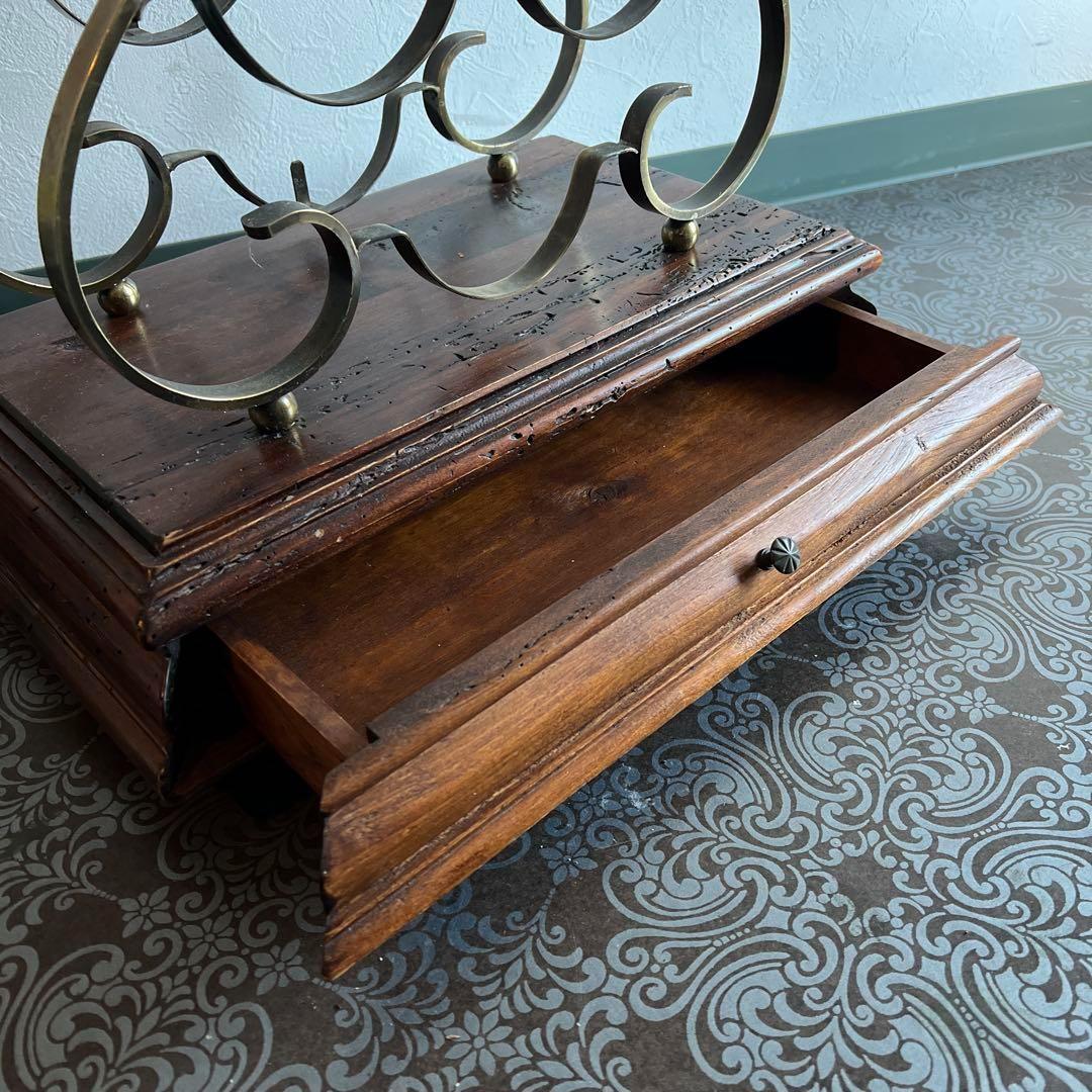 年代を経ることで磨きがかかった美しい表情を見せる木製の土台は引き出しとなっており、ワインオープナーや小物の収納にぴったりです。