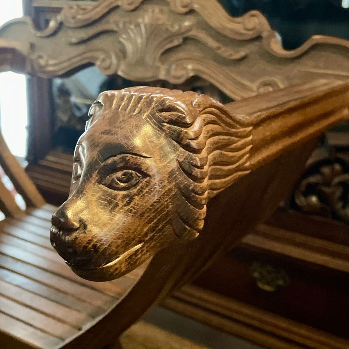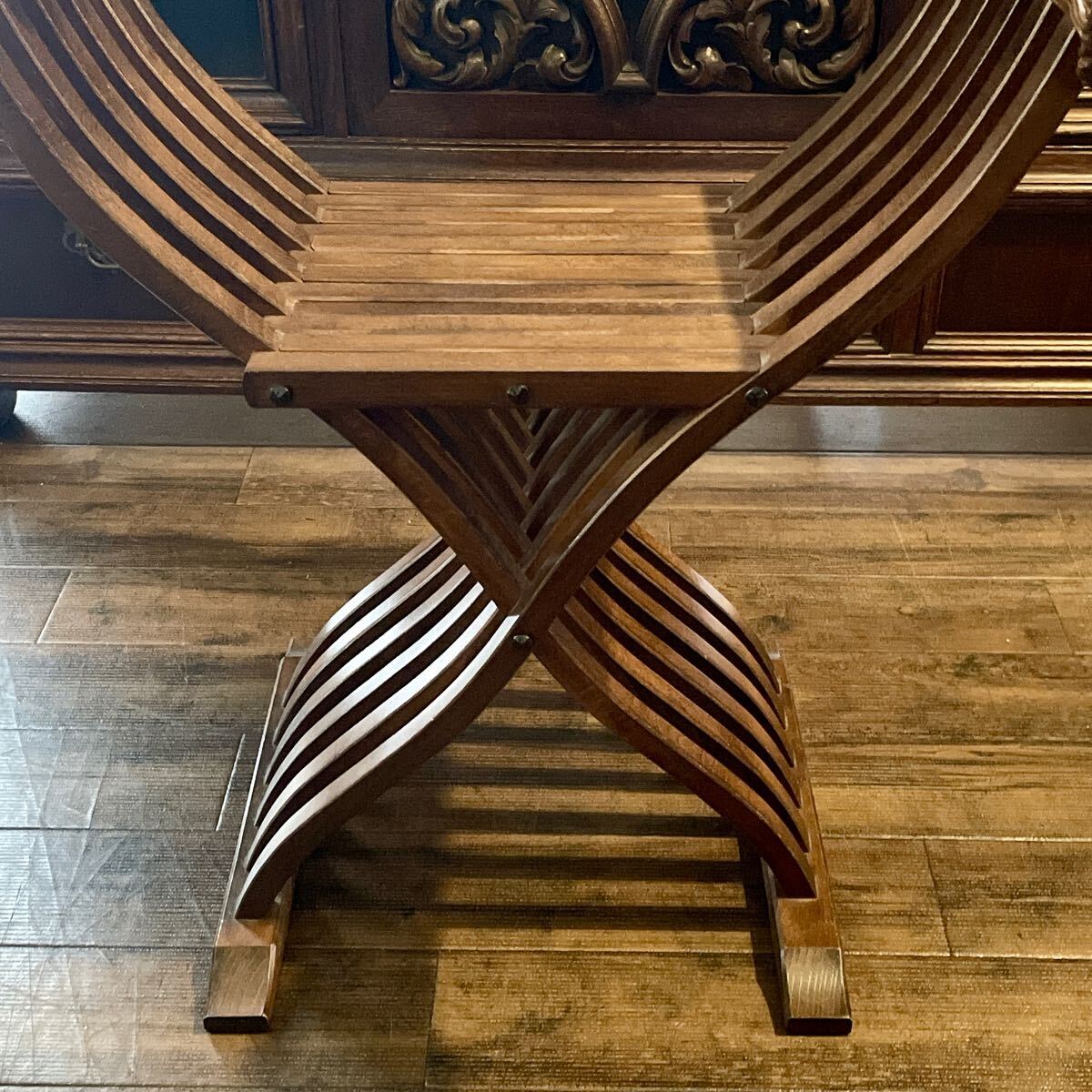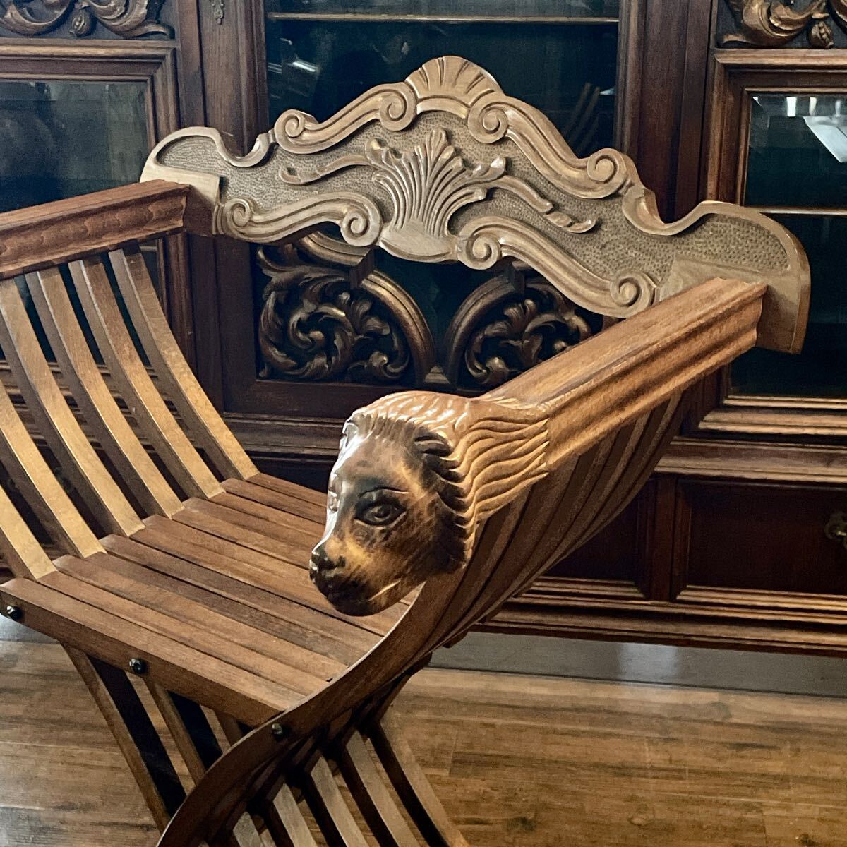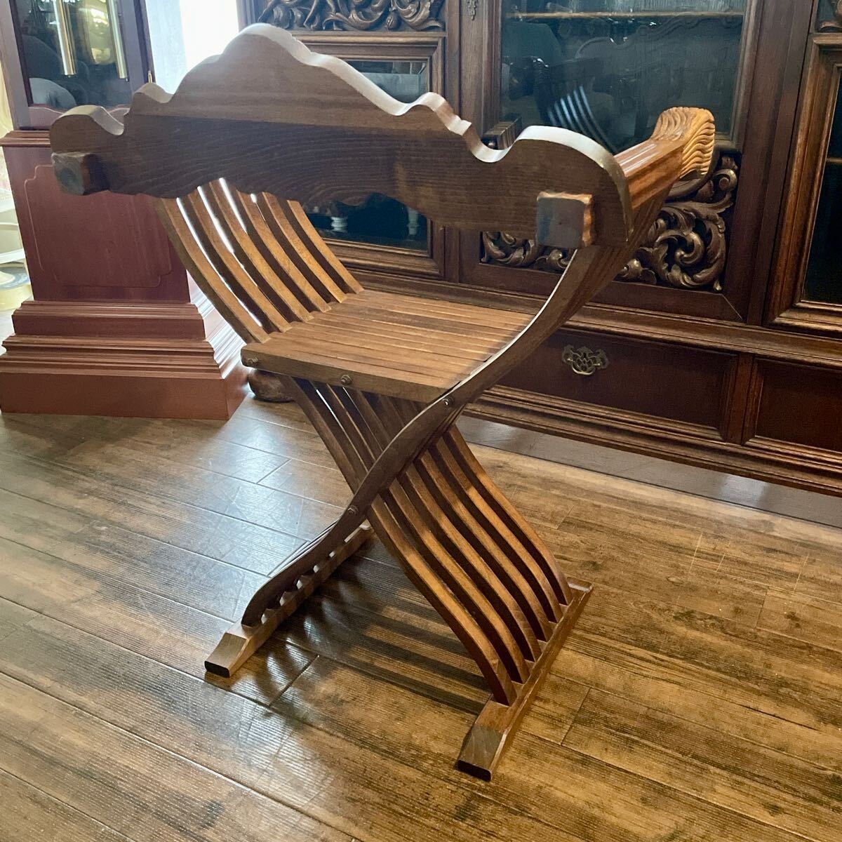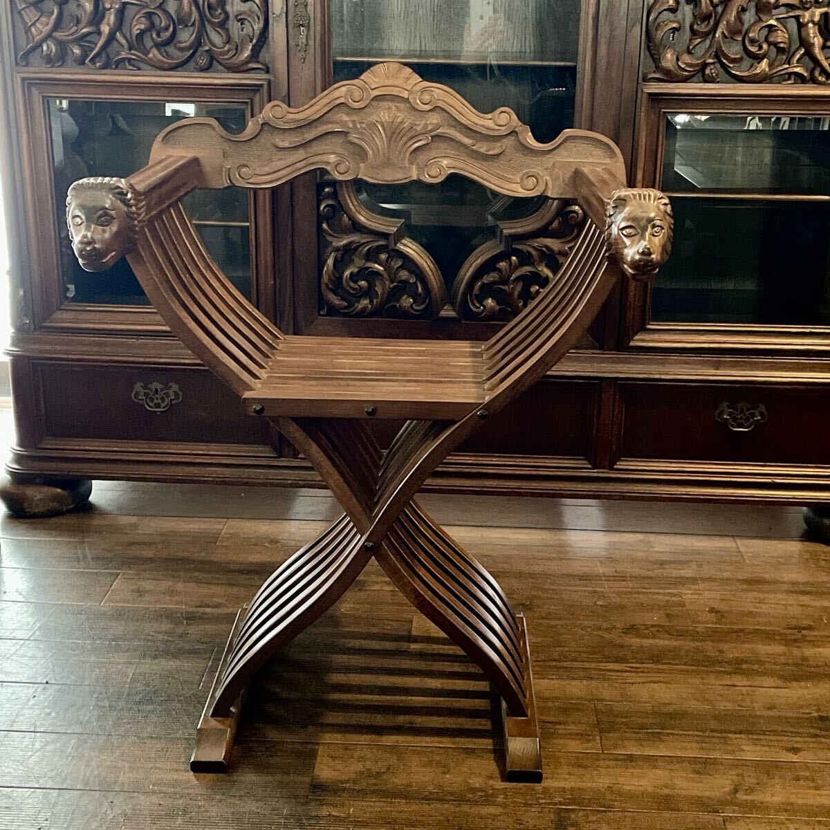 イタリア製の美しい彫刻が目を引くサヴォナローラチェアです。
