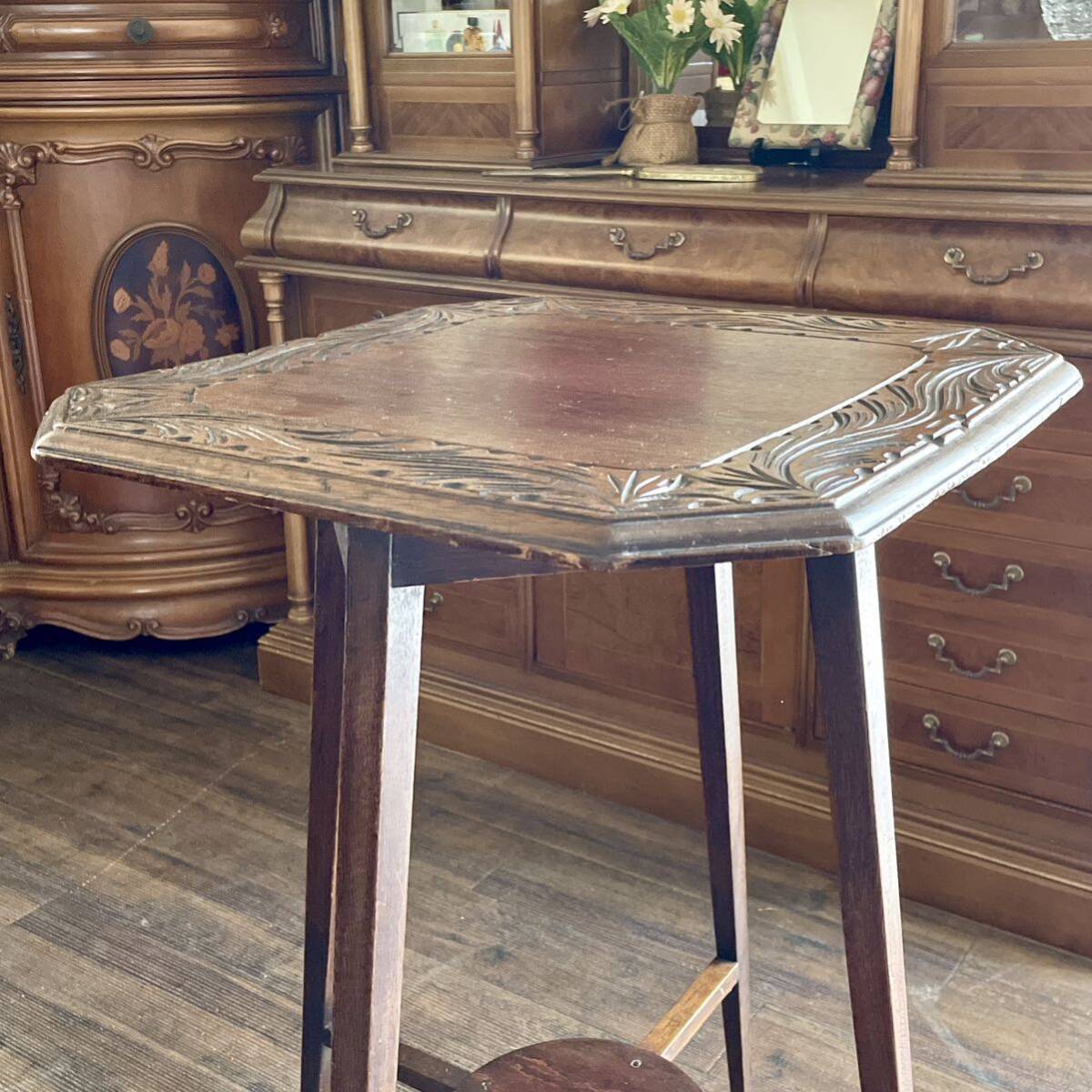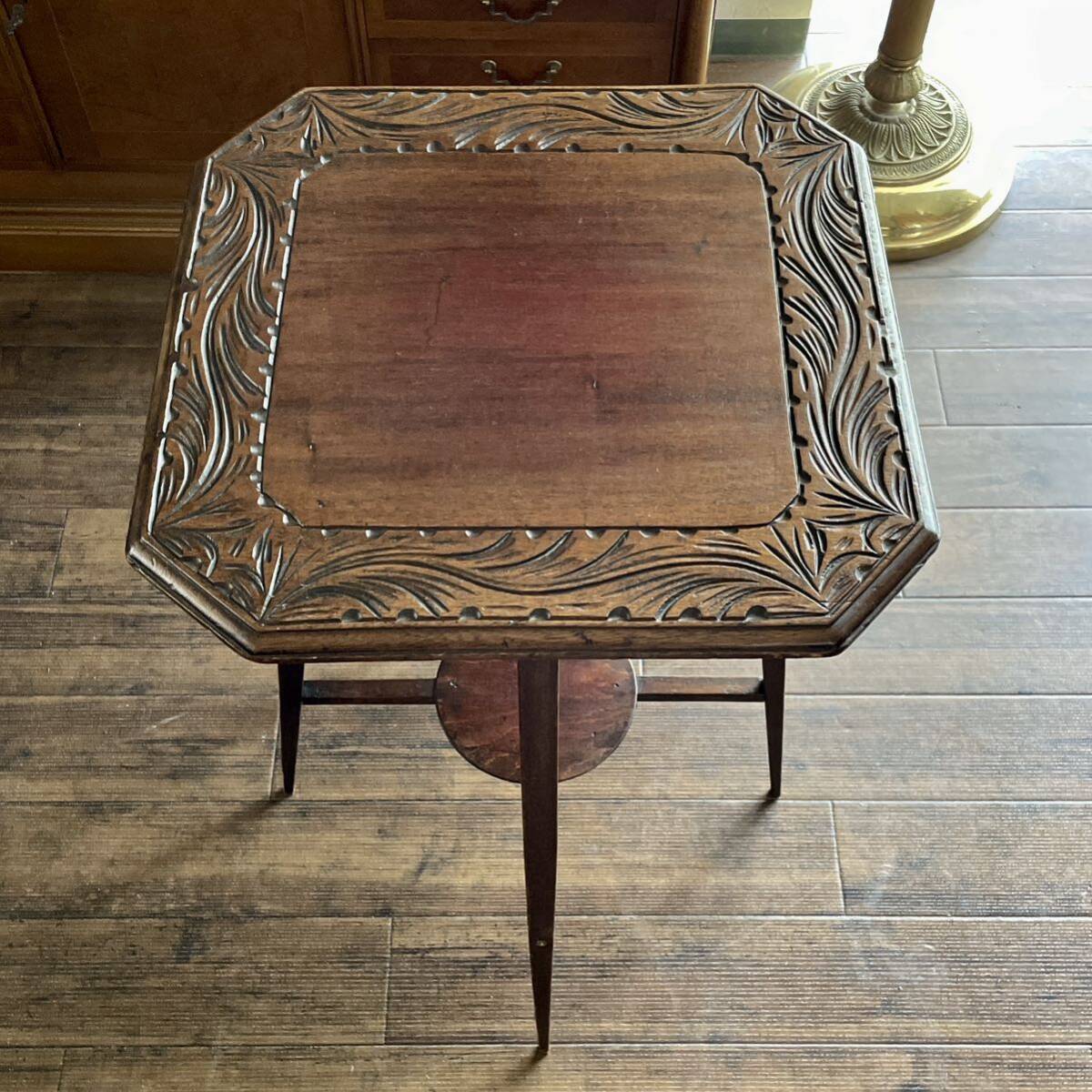 イギリスアンティーク 洗練されたフォルムと天板の彫の美しさが際立オケージョナルテーブル サイドテーブル 凛とした雰囲気漂う品