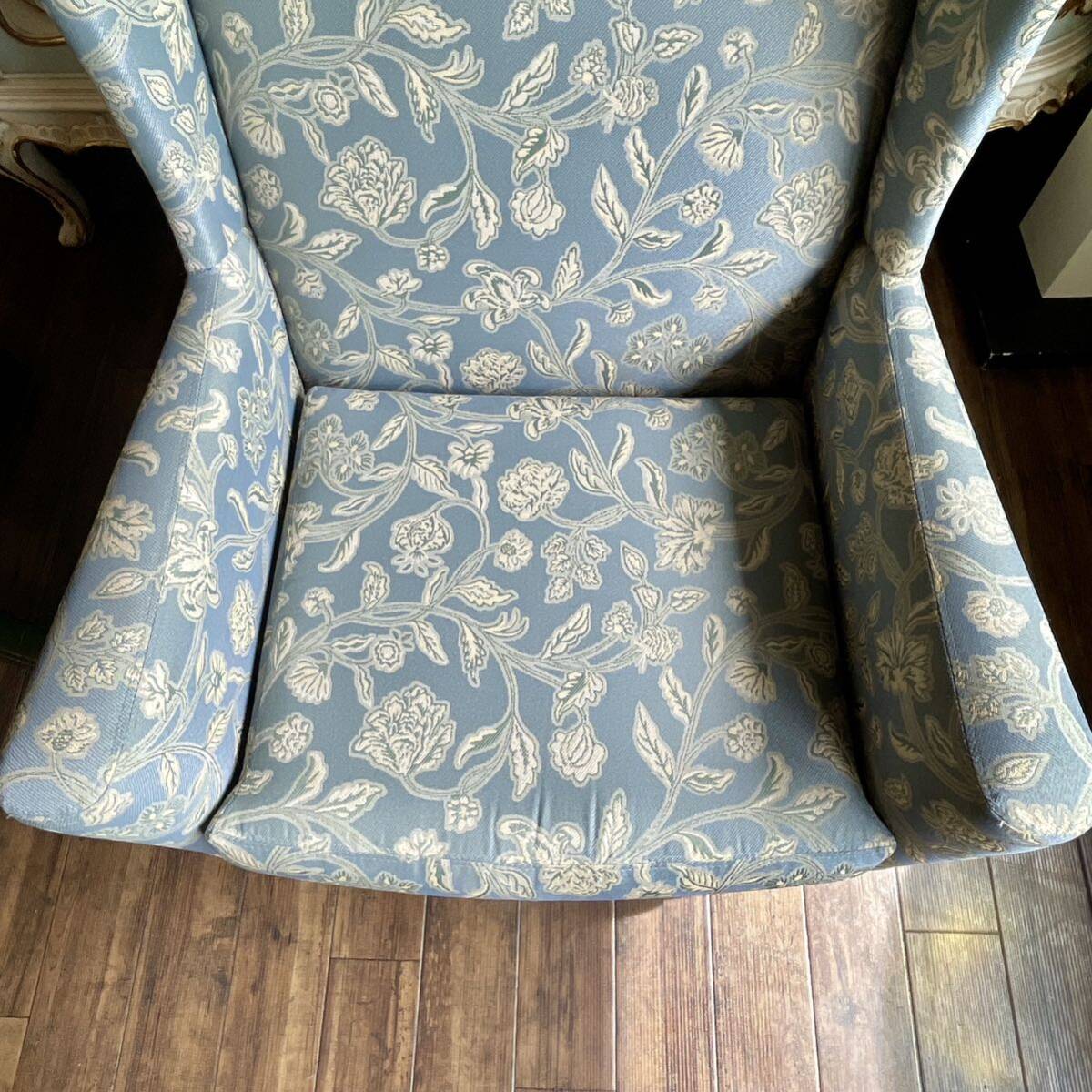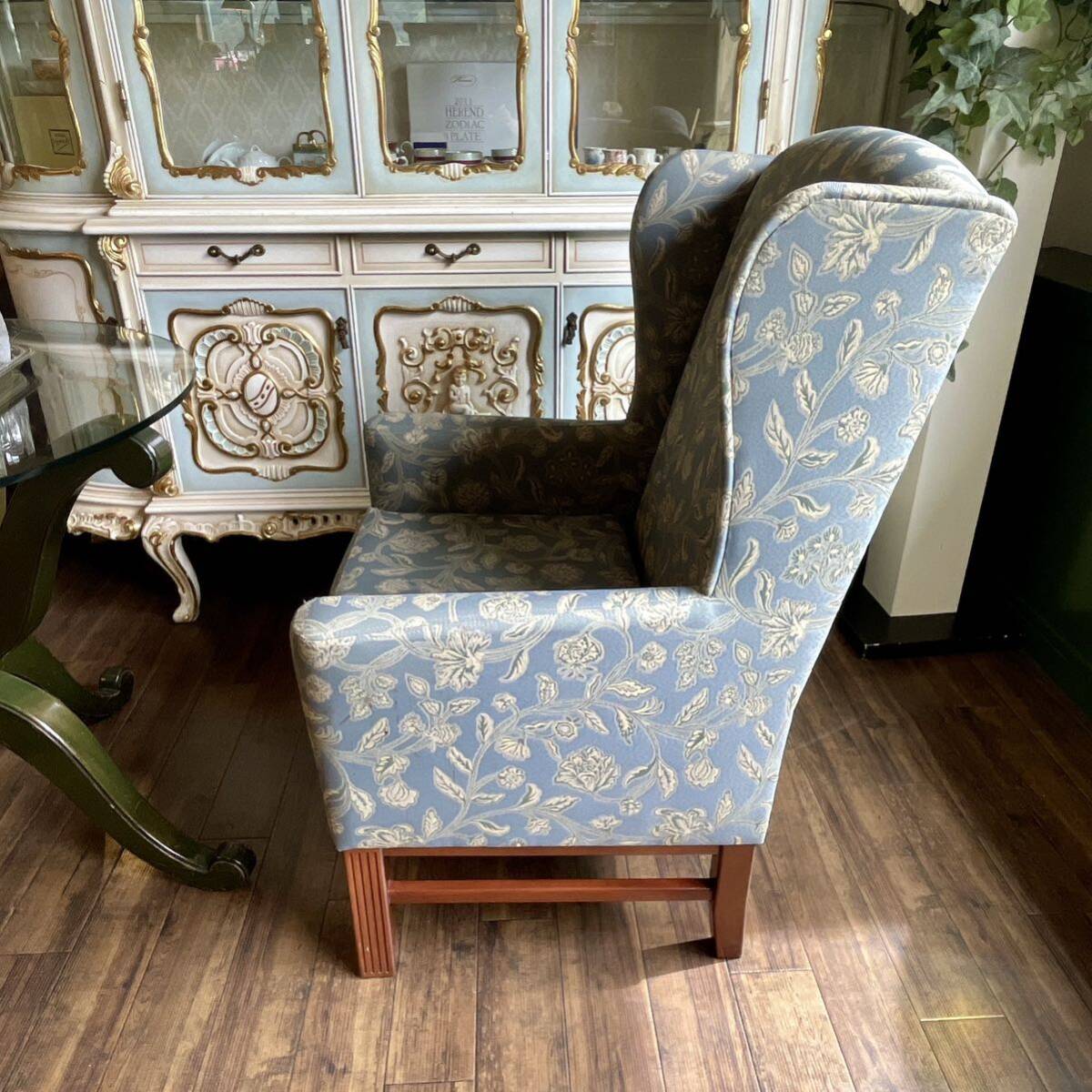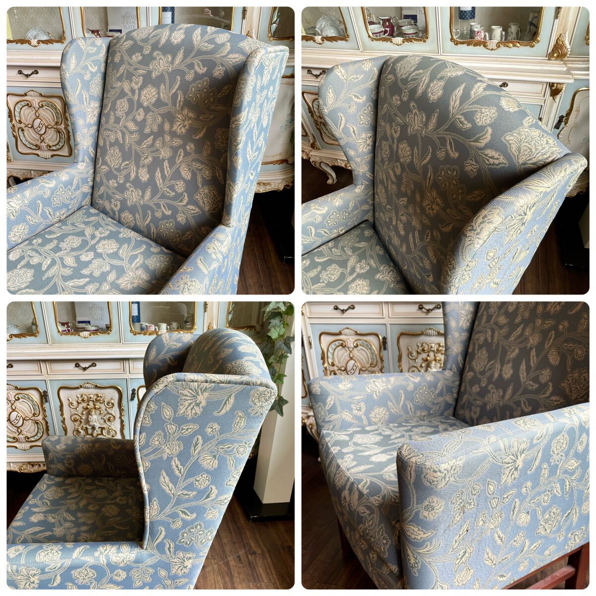 快適な座り心地のウィングバックソファ 上品で落ち着きのある生地のソファはお部屋の雰囲気を格調高く引き立てる素敵な椅子