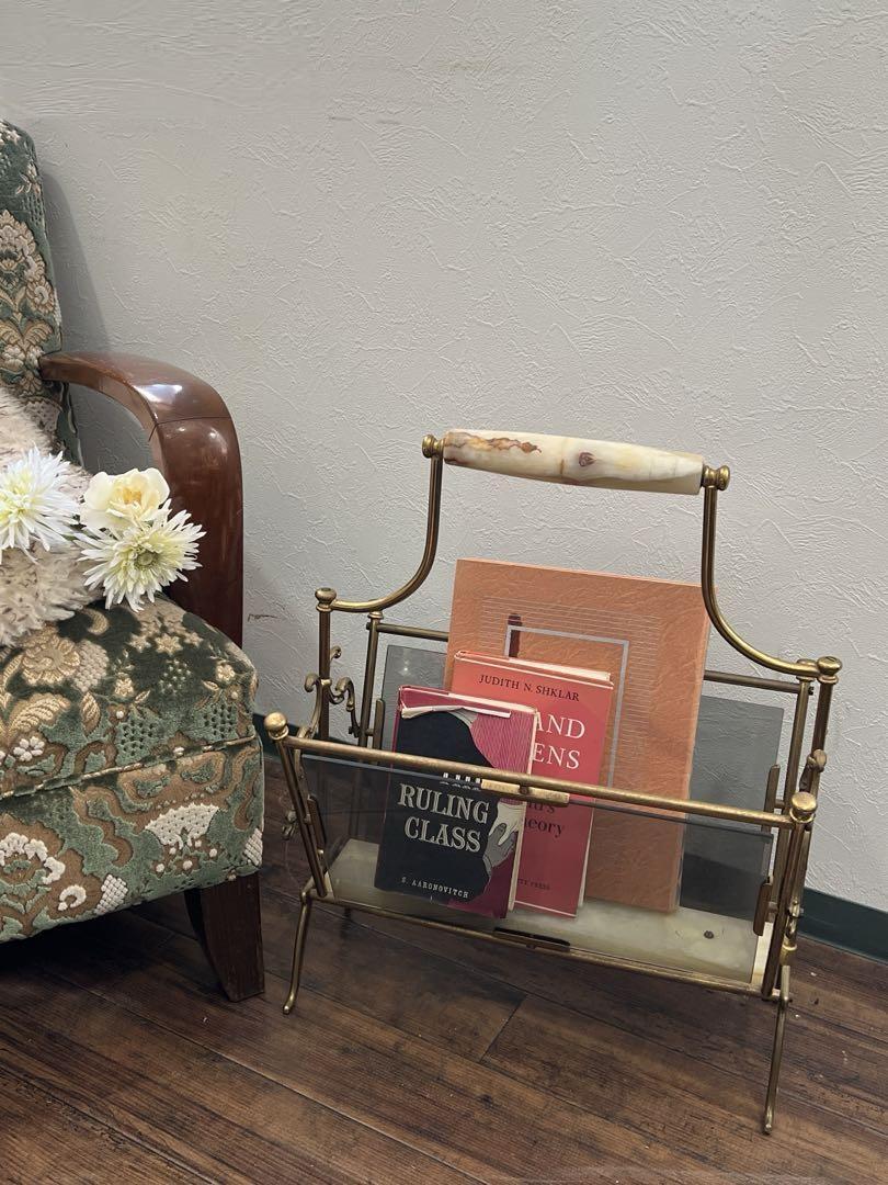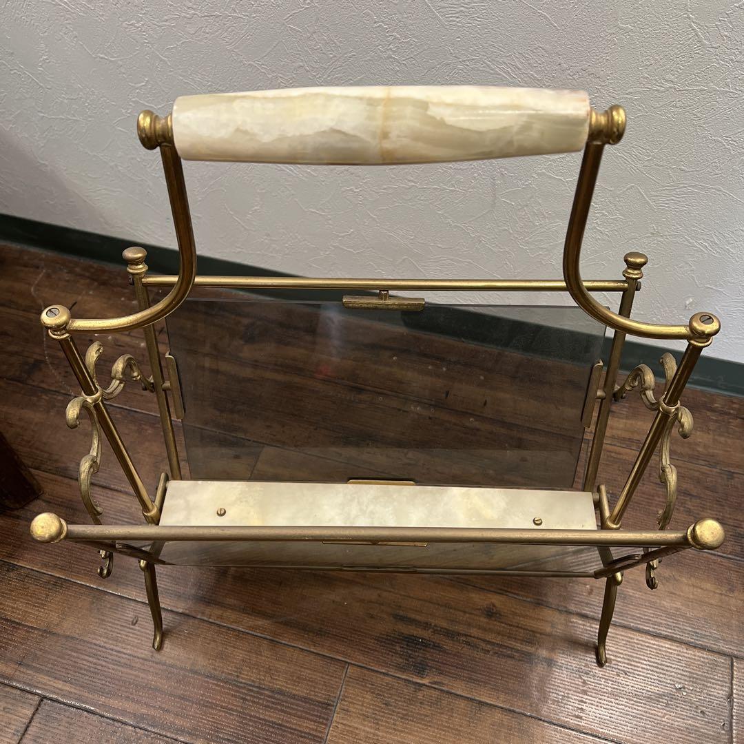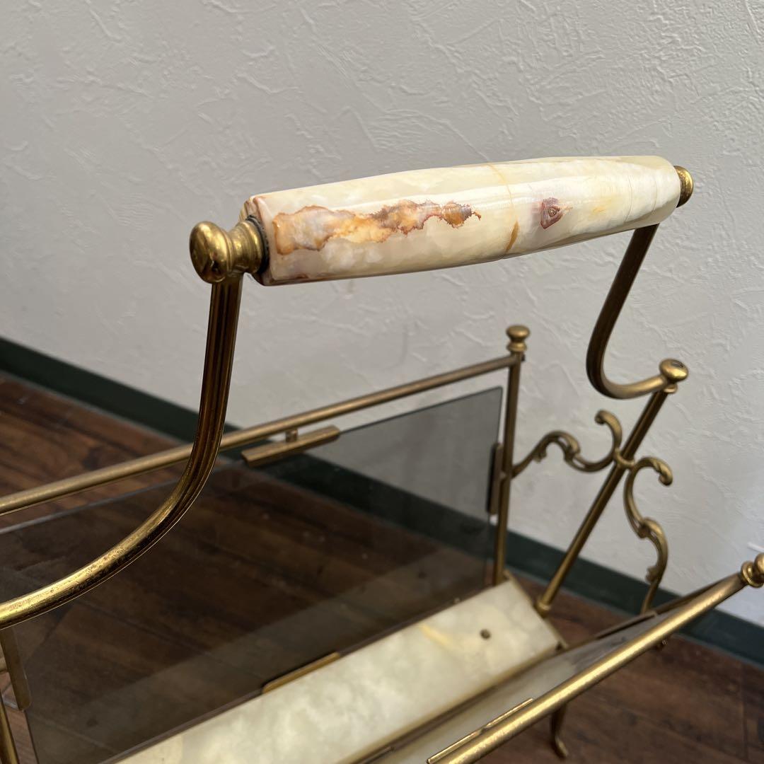 白い大理石ハンドルと真鍮の組み合わせが上品な逸品
