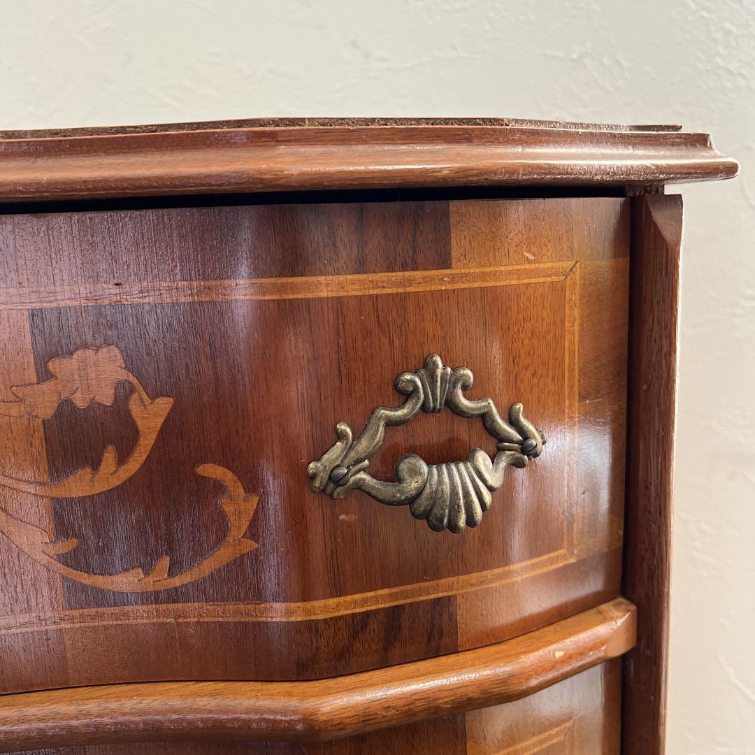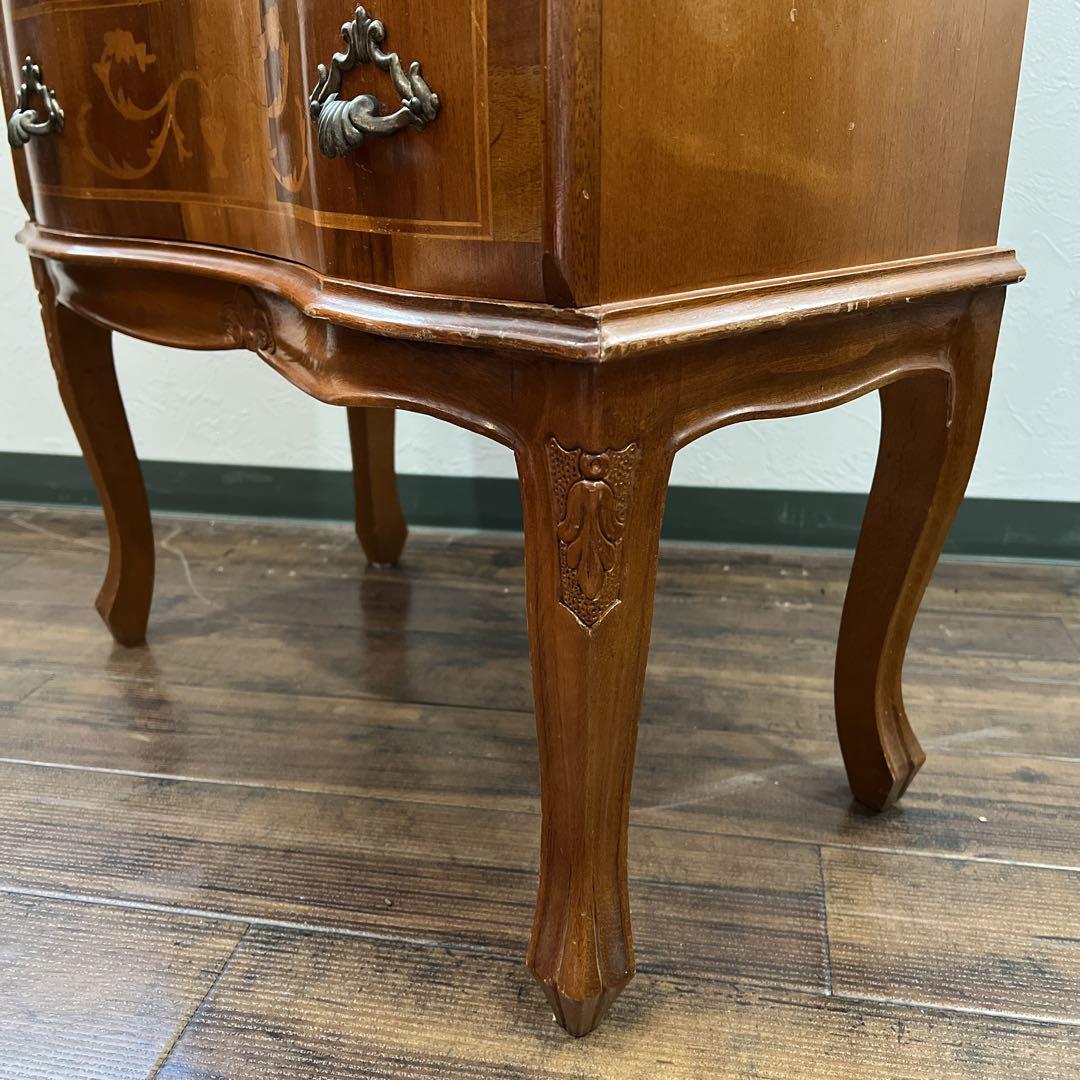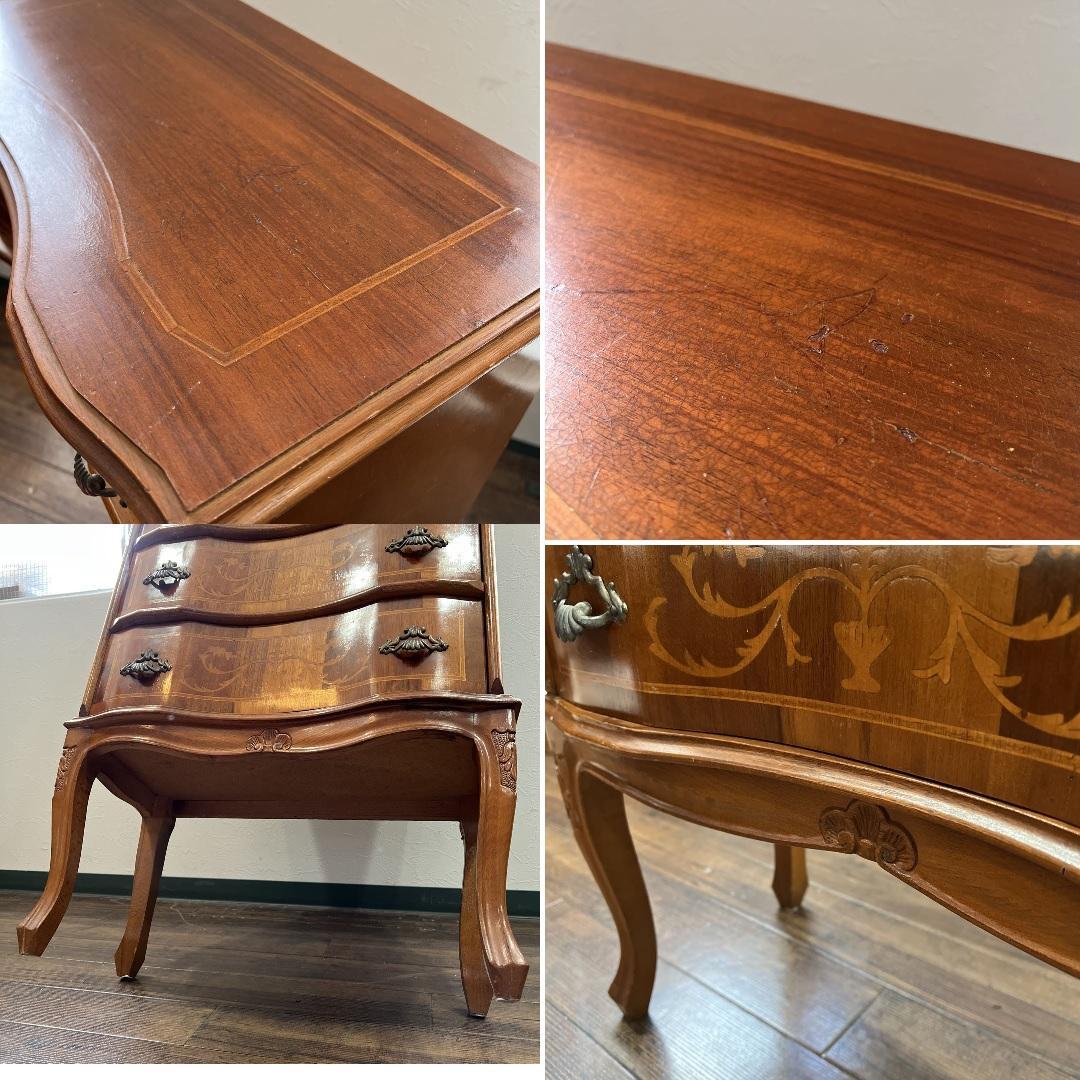 イタリア伝統工芸の木象嵌が贅沢に施され、バロック様式をルーツにした華やかな装飾やカーブを取り入れた上品な逸品