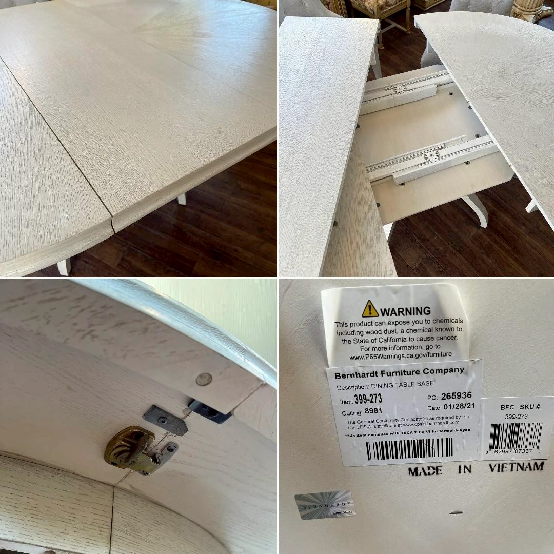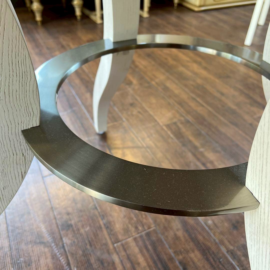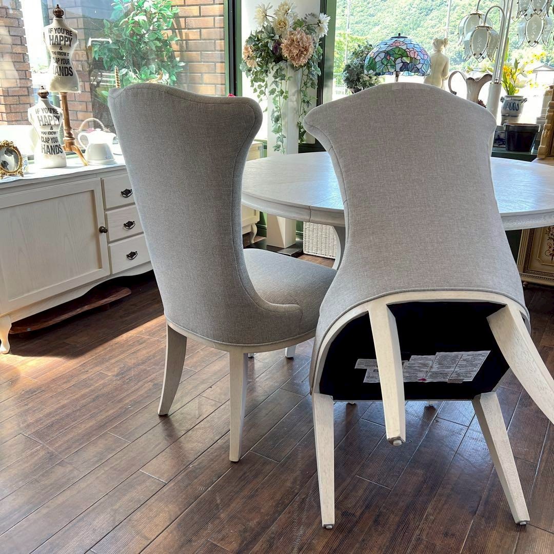 フレンチシックなスタイルのダイニングセットは、明るい日差しの差し込むお部屋がよく似合います。テーブルは大きな楕円になりますので、来客のある時にも便利です。