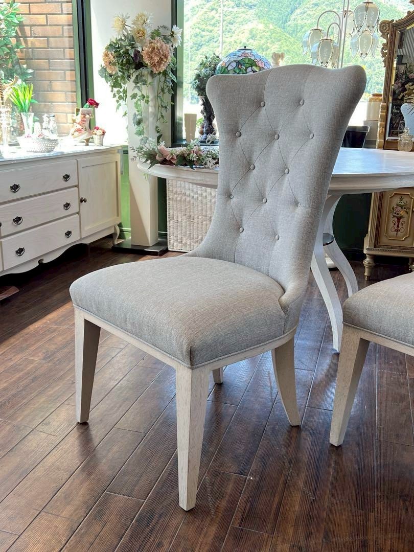 ホワイトペイントのテーブルに、グレーのチェア