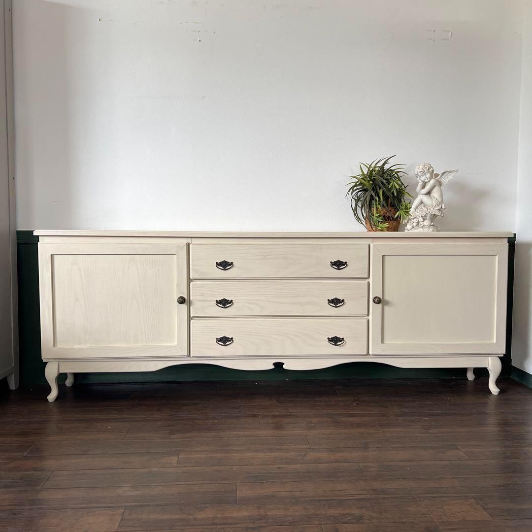 アクセントに黒のクラシカルな金具をあしらった、フレンチシャビーな雰囲気が素敵な逸品