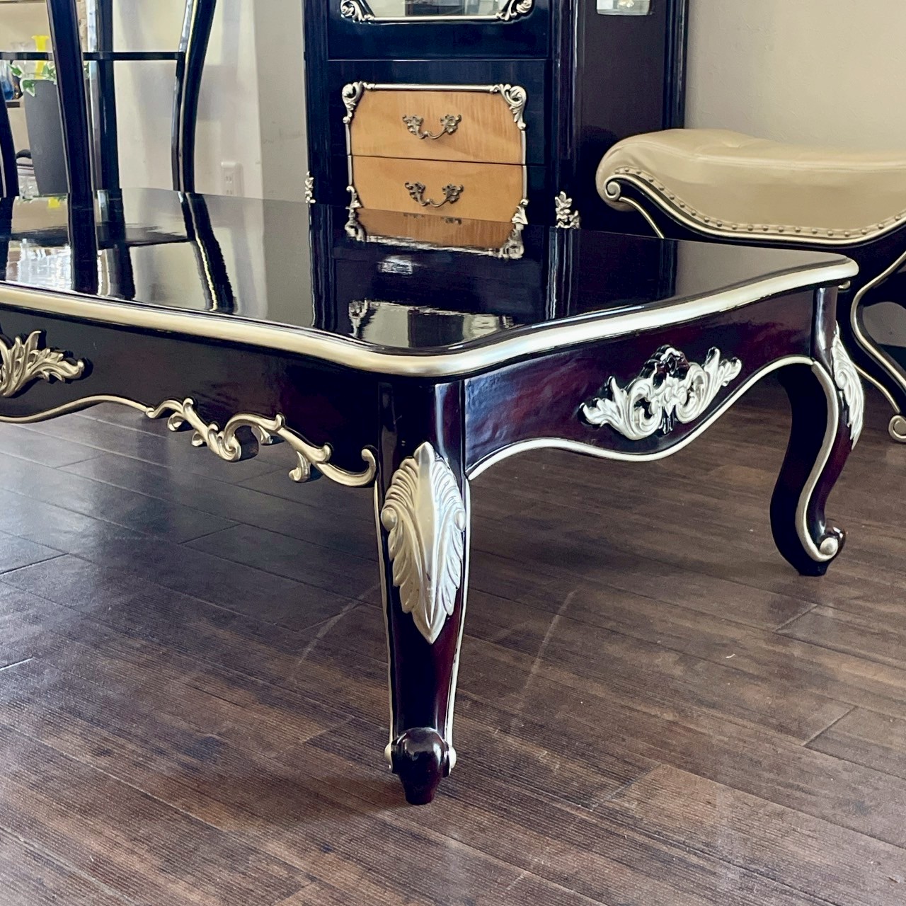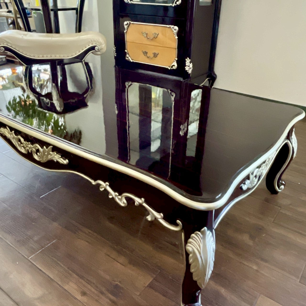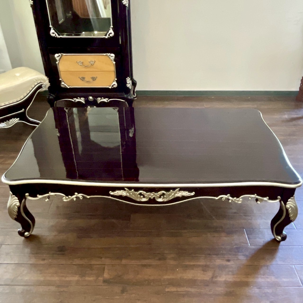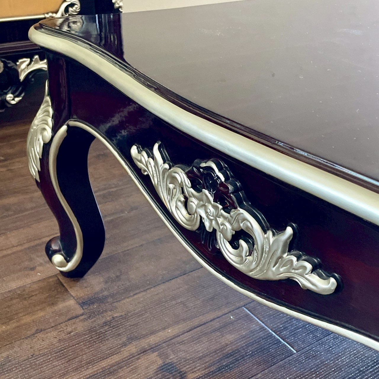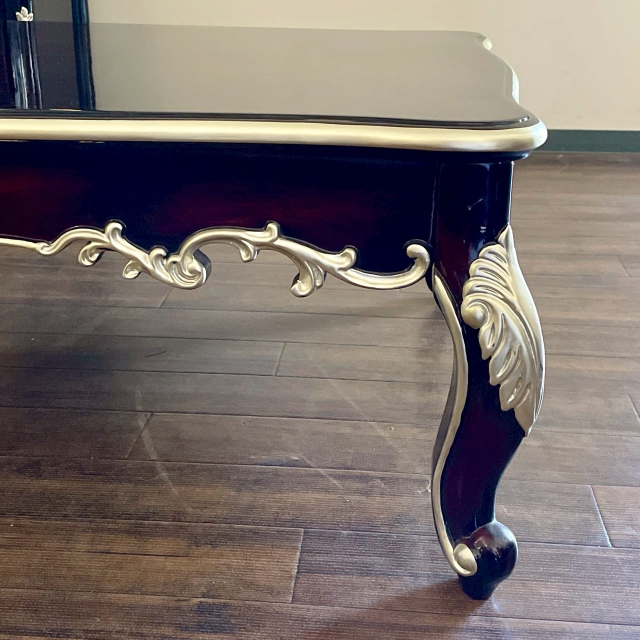 ブラック×シルバーで仕上げられたロココ調の優美なセンターテーブル