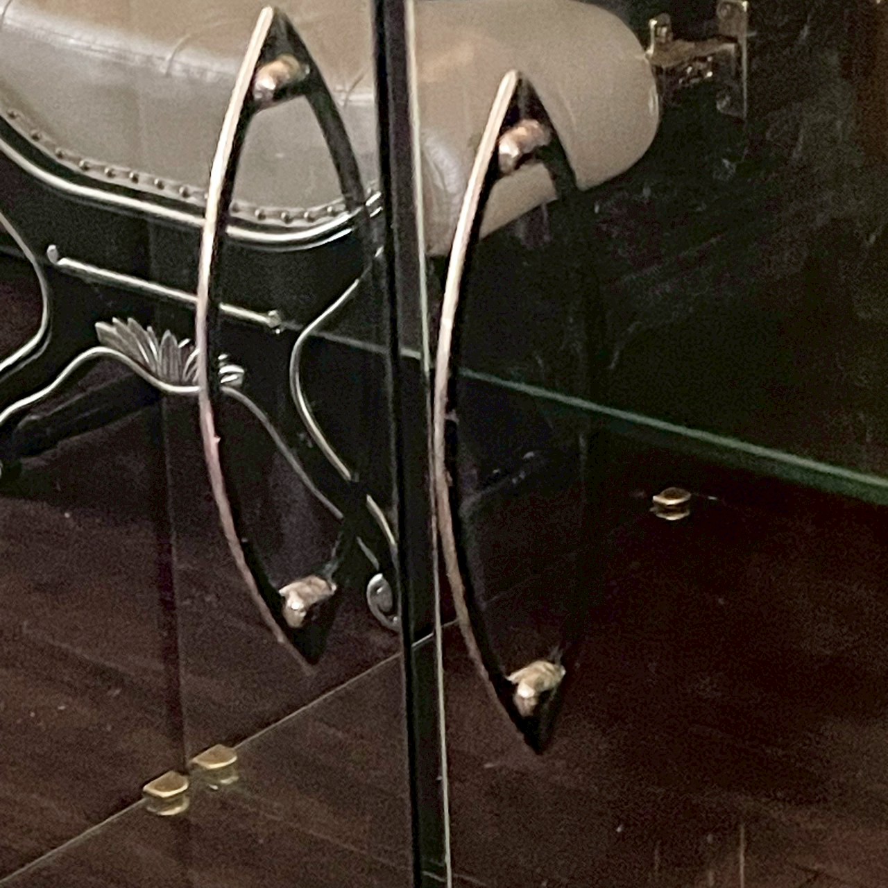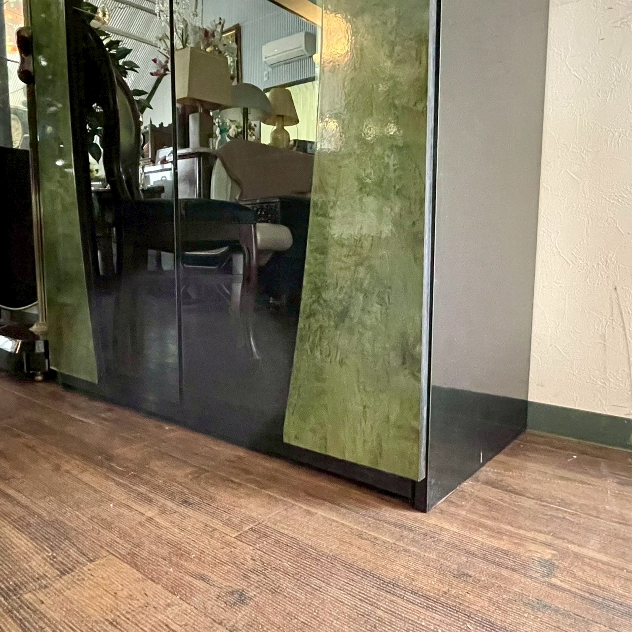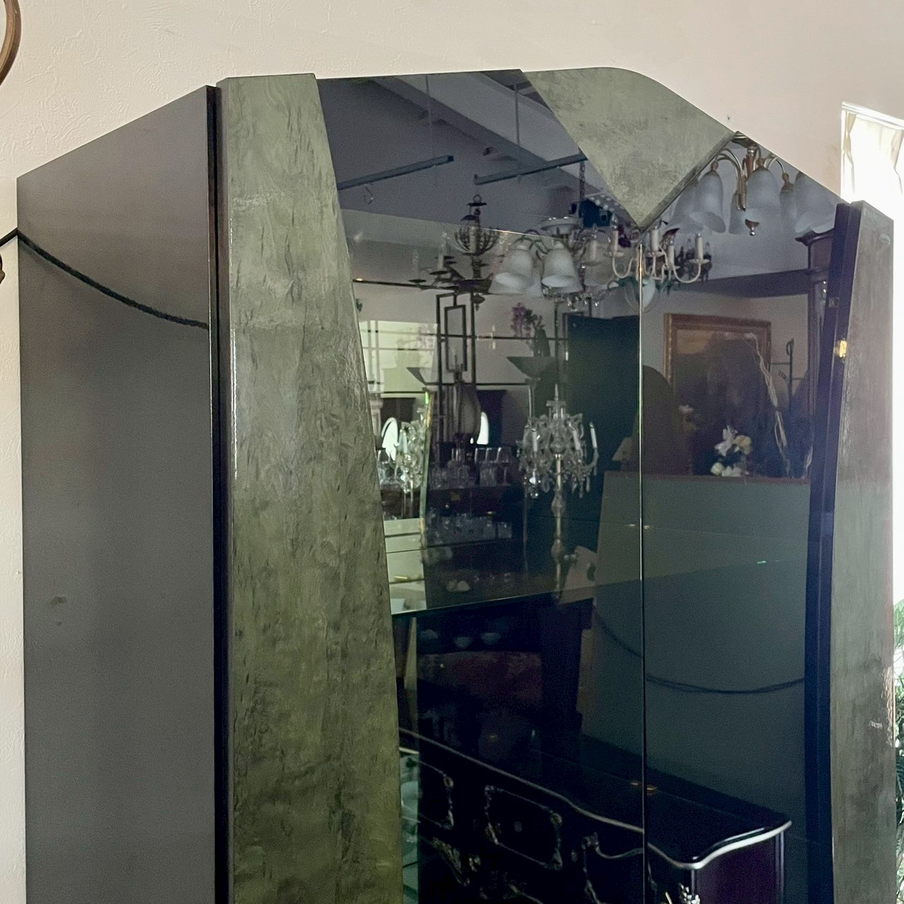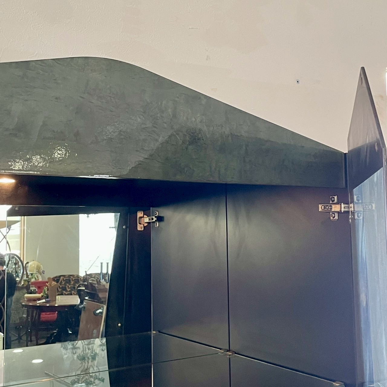 鏡面仕上げのガラス扉や個性的なフレーム