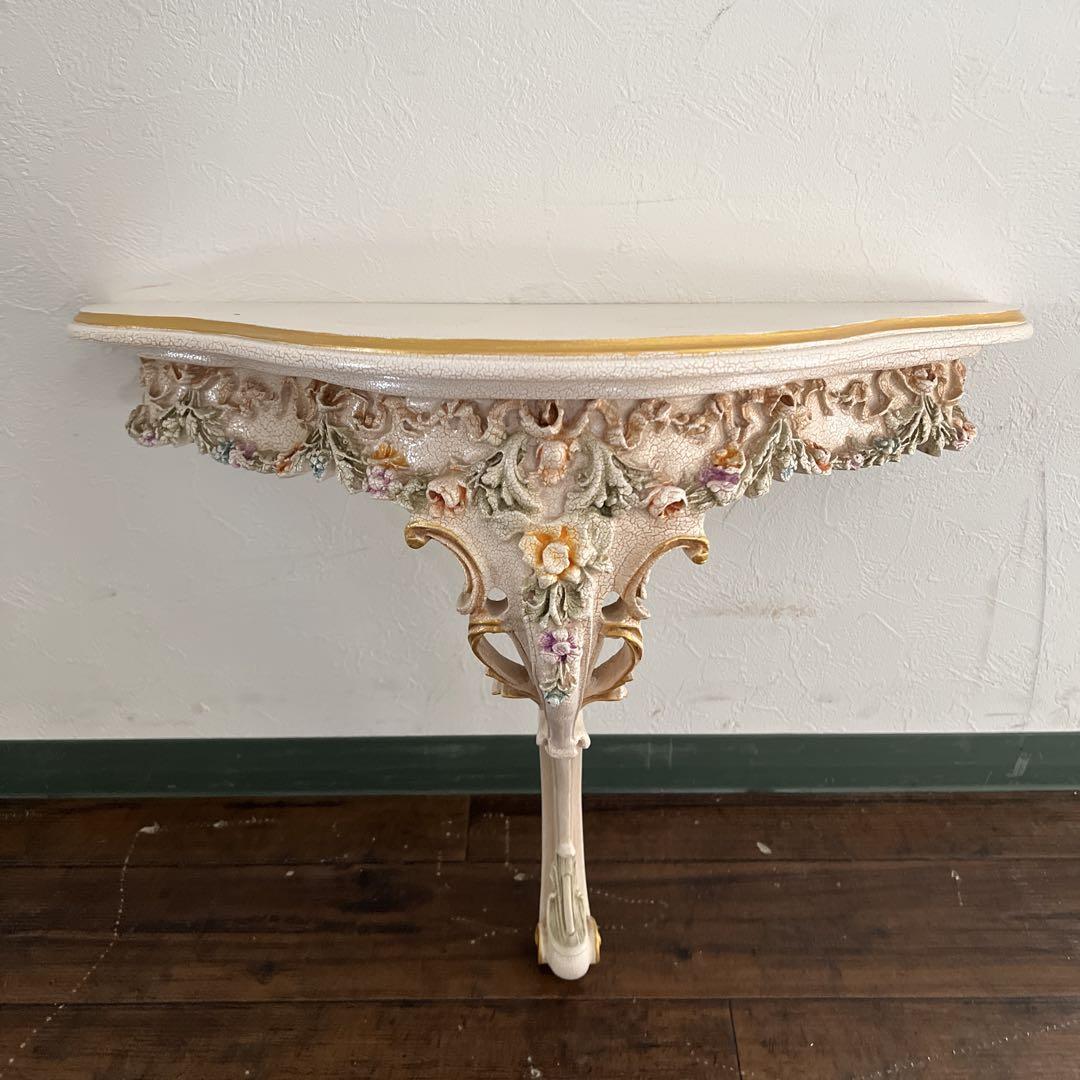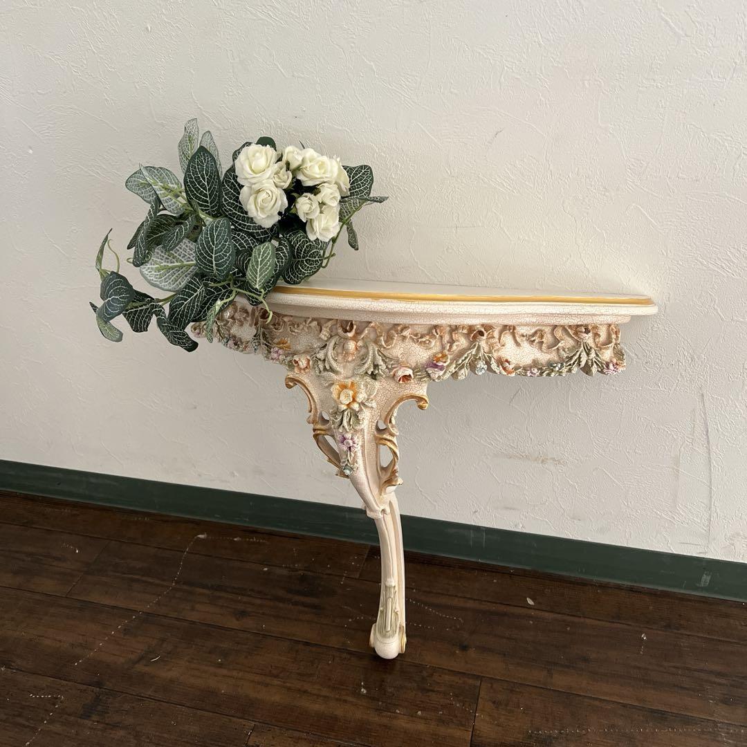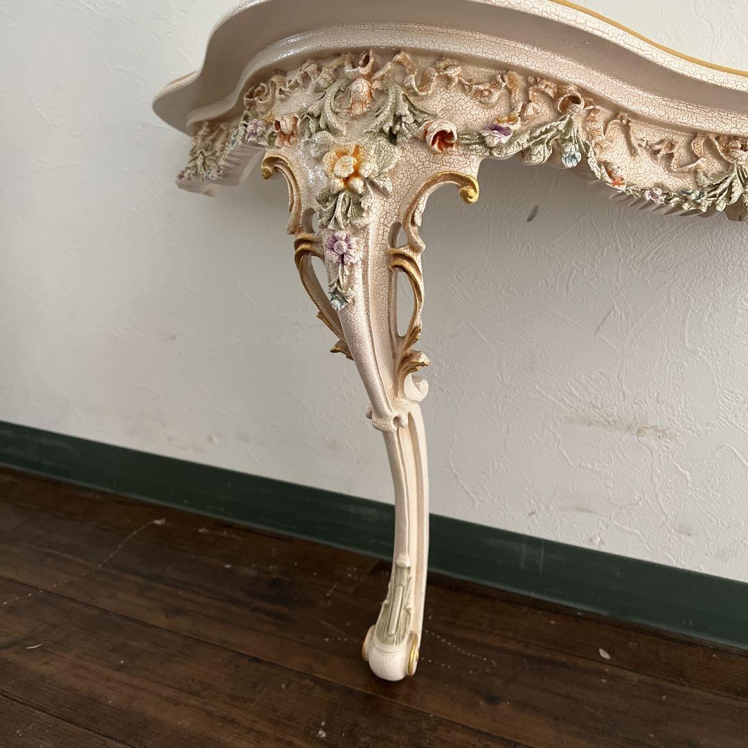 ロココ・バロック様式の白家具で、アイボリーの本体にハンドペインティングによる花柄の装飾が施されています。